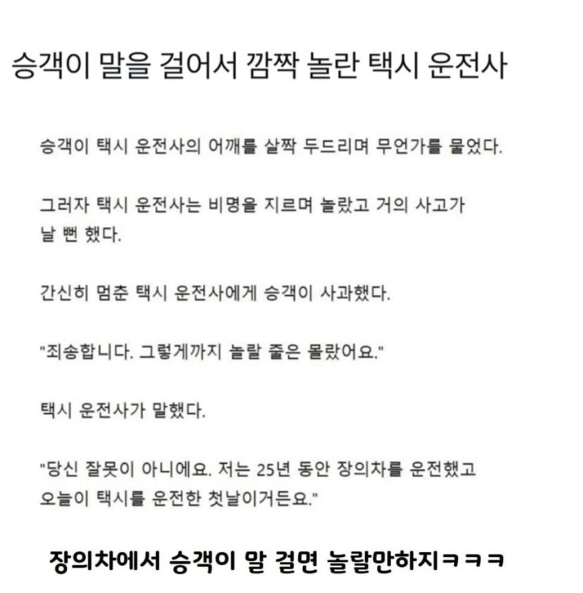 승객이 말걸어서 소리지른 택시운전사