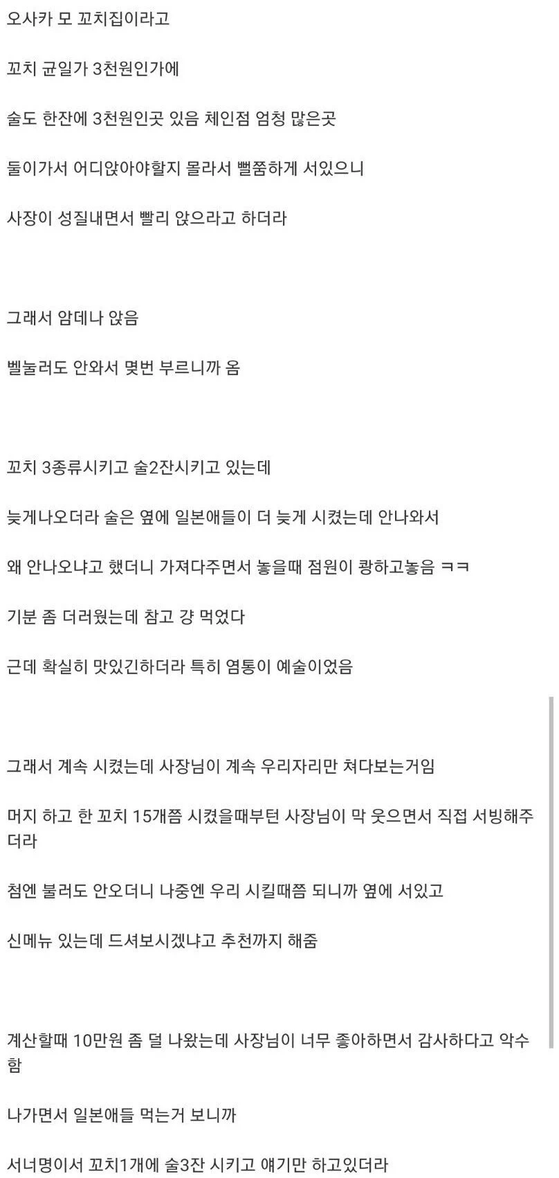 일본식당에서 금융치료 해준 한국인들