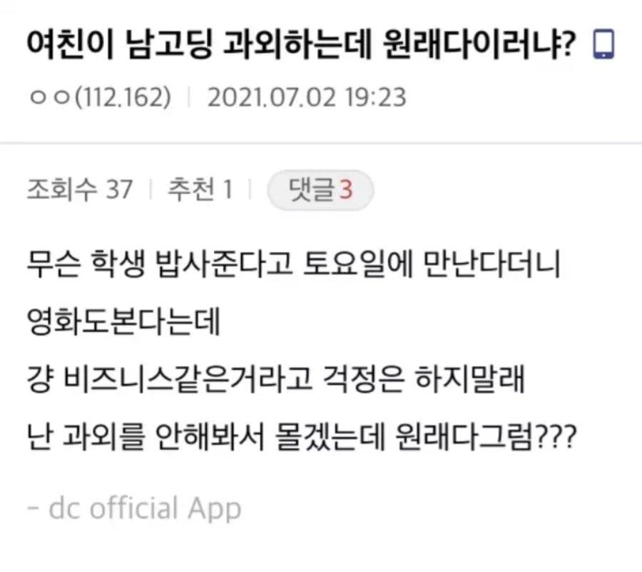 여친이 남고딩 과외하는데 원래 다 이러냐?