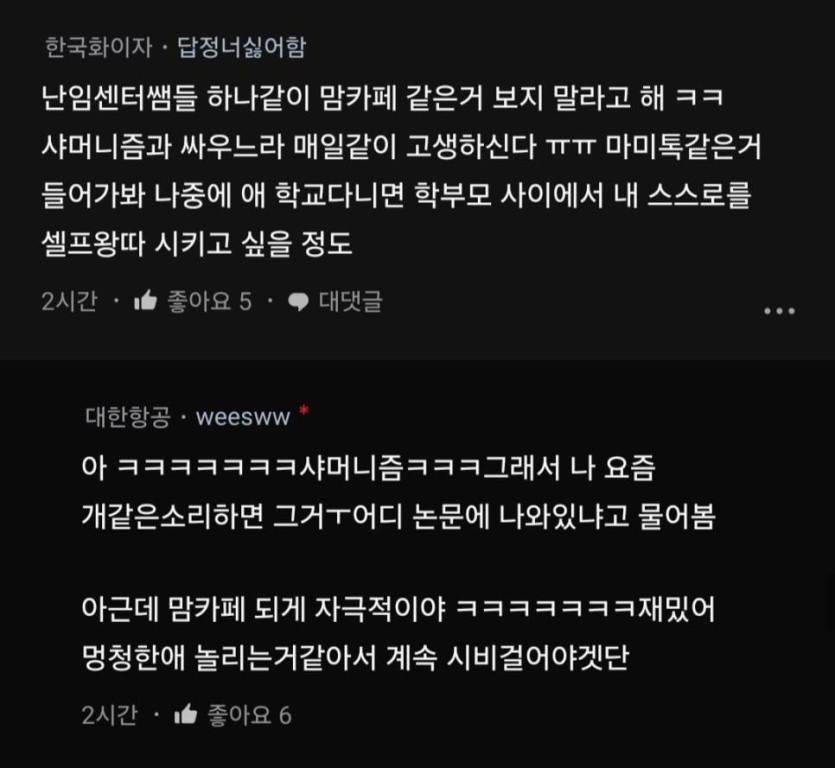 정보 얻으려고 맘카페 갔는데 수준 개 떨어진다는 블라인