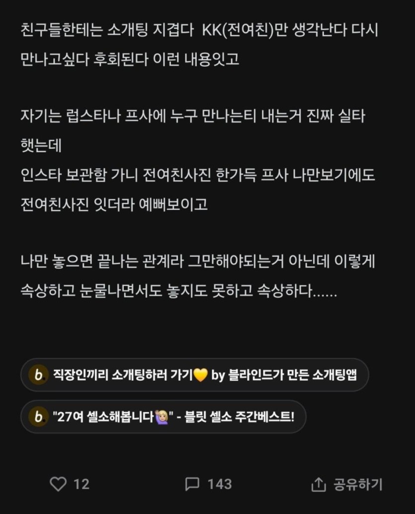 썸남이 나 뀨뀨로만 만나는 걸 알게 됐어.blind