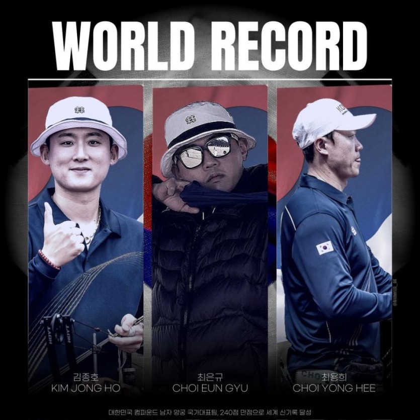 고인물 세계대회 근황.... rh1 0 157 0 2025.05.08 02:30 최은규, 최용희, 김종호 선수로 이루어진 남자 컴파운드 대표팀이 단체전 24발의 화살을 모두 10점에 꽃아넣으며 세계 신기록을 세움 0