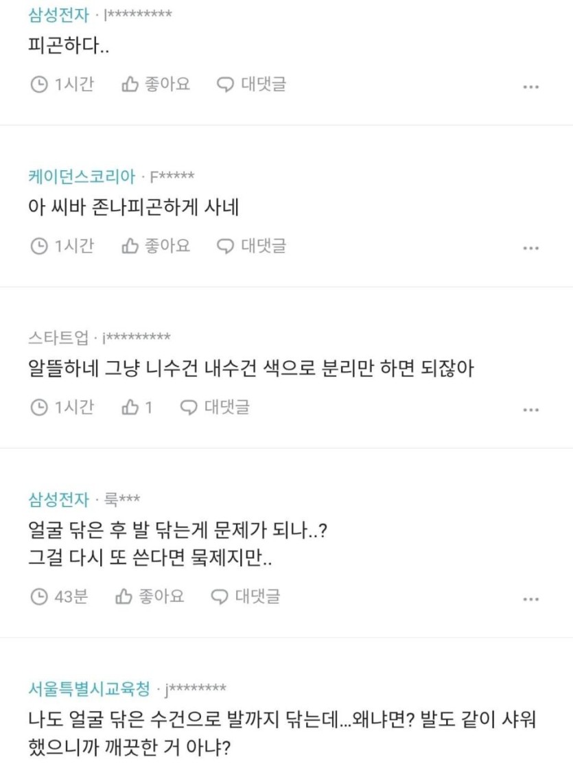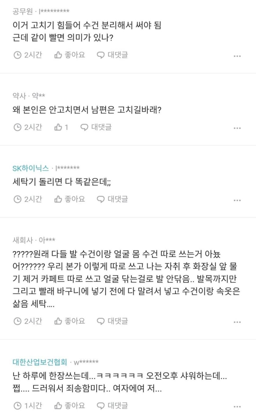 남편이 얼굴닦는 수건으로 발까지 닦아. jpg