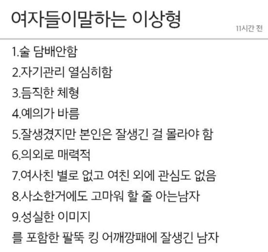 여자들이 원하는 이상형 남자
