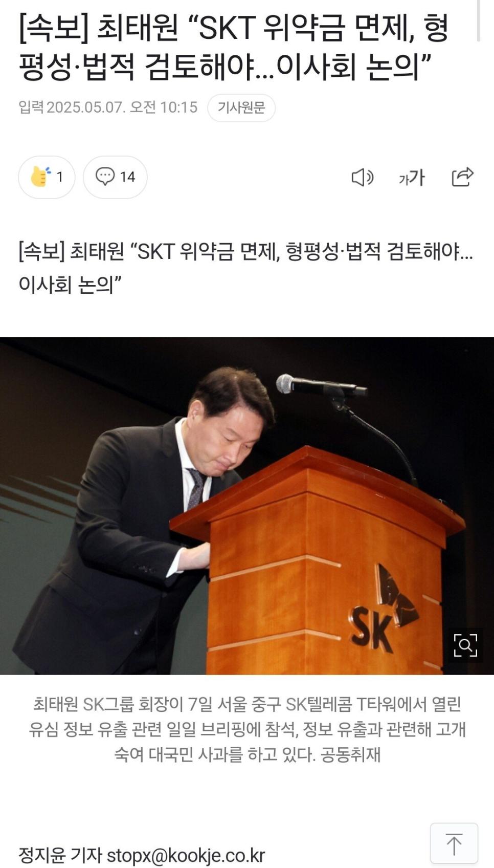 [속보] 최태원 “SKT 위약금 면제, 형평성·법적 검토해야