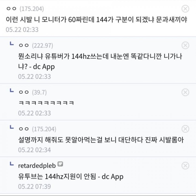 144hz모니터 구매자들을 이해못하겠다는 사람