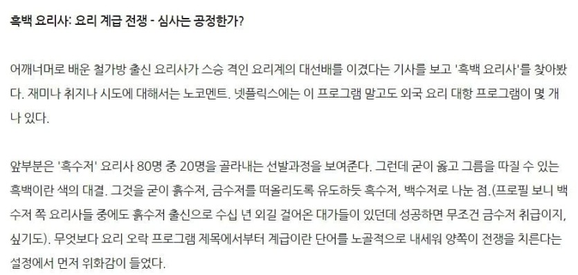 한강 소설가 비난했던 김규나, "흑백 요리사의 심사는 공정한가?"