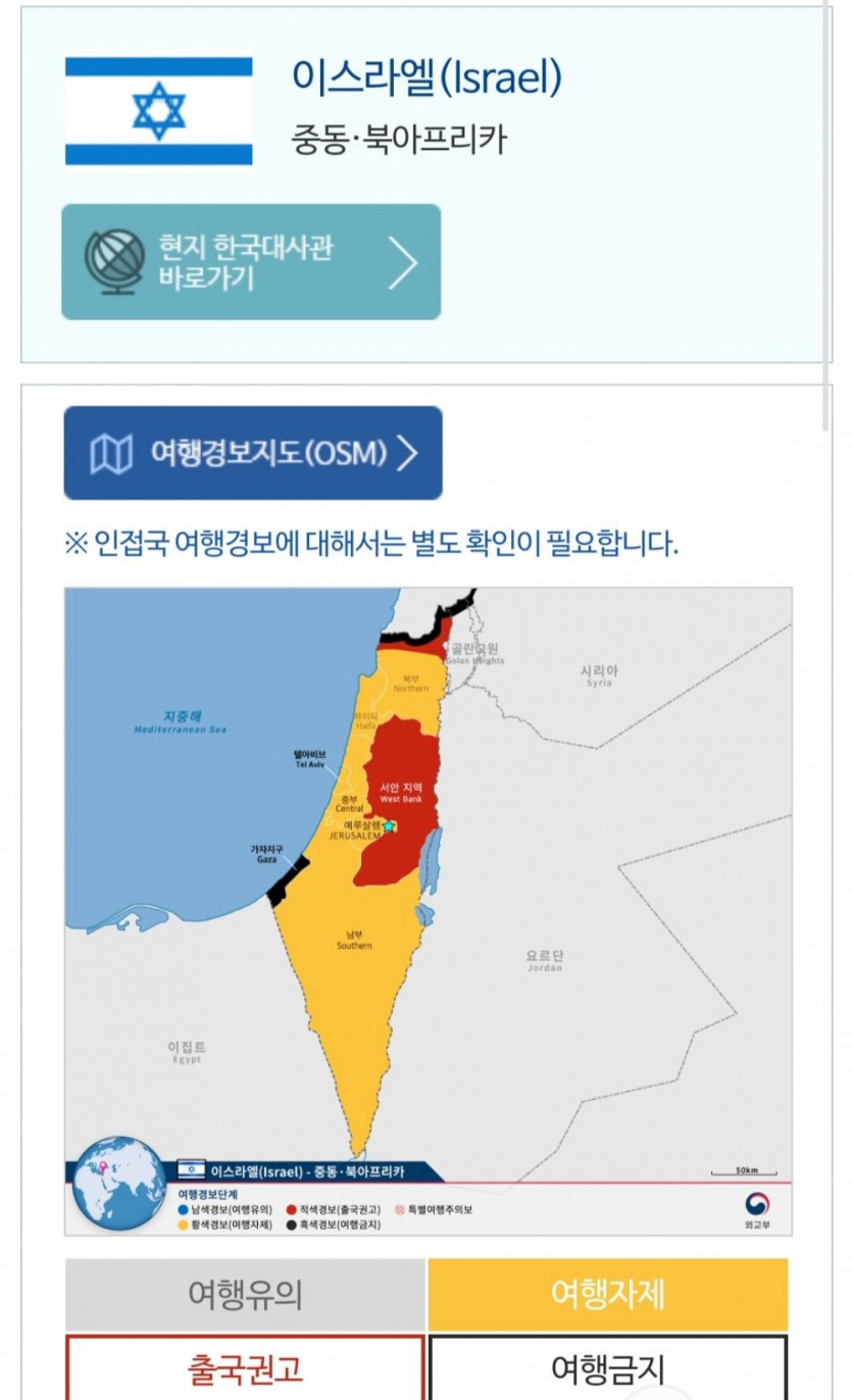 대한민국 외교부는 러우전쟁 발발 12일 전에 우크라 전역과 러시아 접경지대에 여행금지를 발령했고, 하마스 테러 2개월 전에 가자지구 전체에 여행금지를 발령함(특히 우크라 여행금지국가 지정은 서방국가의 대사관 철수시점과 유사함)