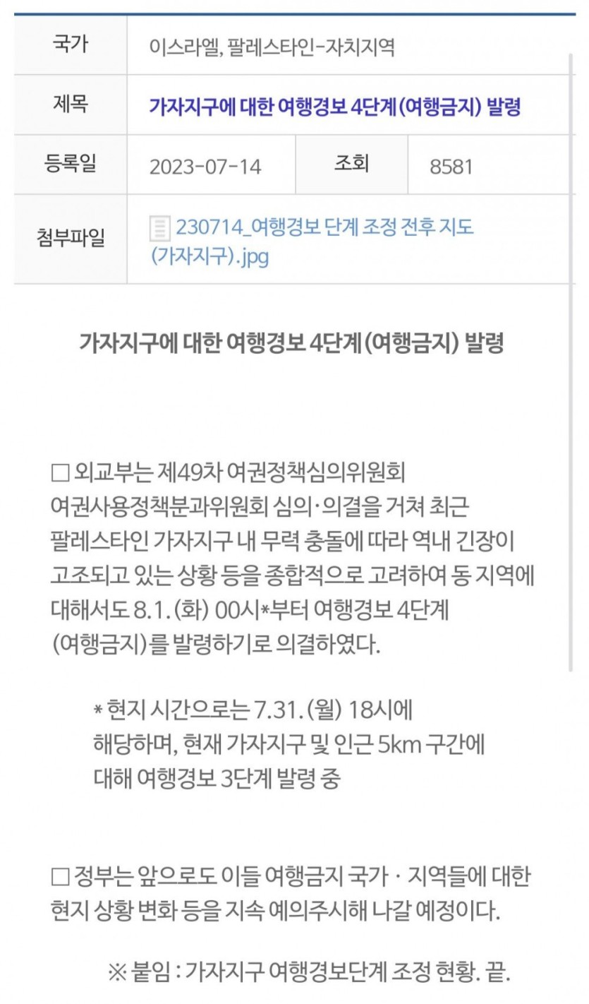 우리나라가 인도-파키스탄 접경지에도 이전 사례처럼 여행금지를 발령하면 굉장히 심각하다는 신호