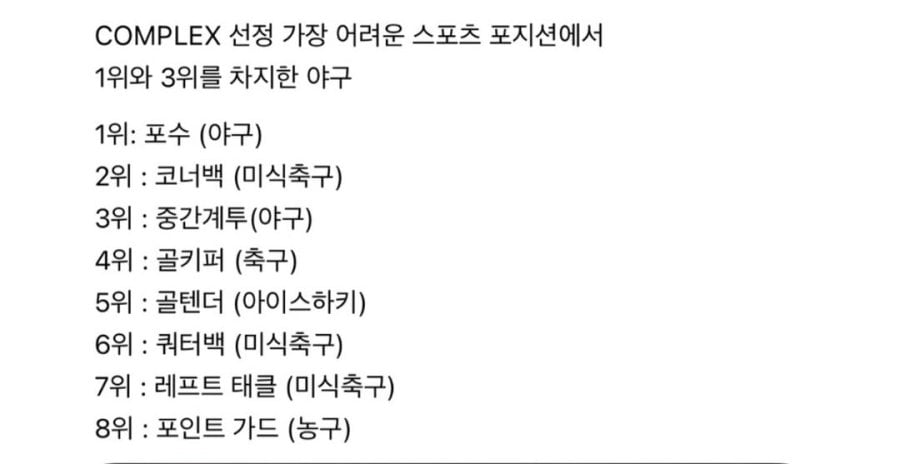 가장 어려운 스포츠 포지션