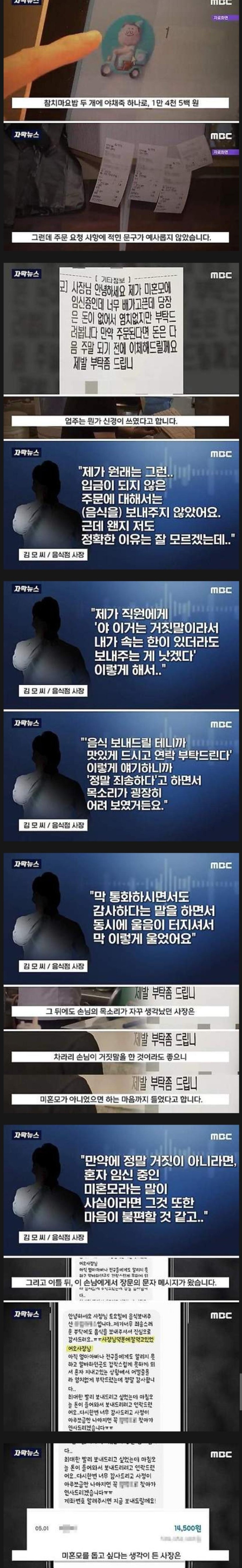 배달요청에 적힌 미혼모의 부탁