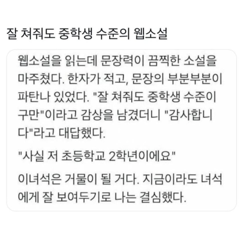 잘 쳐줘도 중학생 수준의 웹소설.JPG