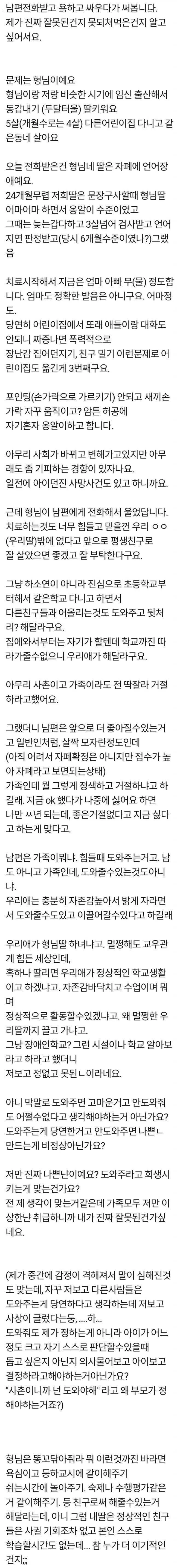 자폐아 자식 돌봐달라는 것 때문에 남편이랑 싸웠어요