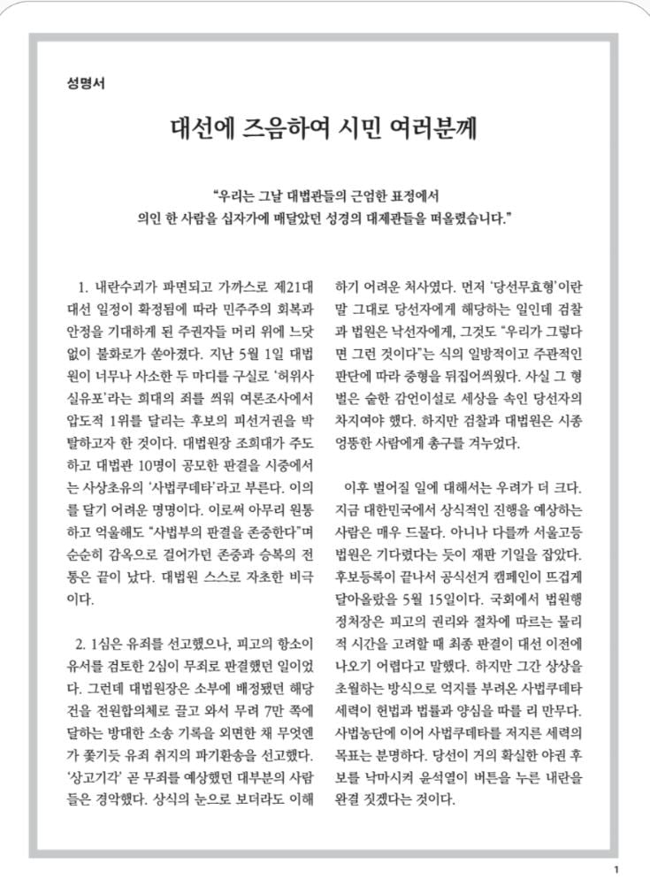 정의구현사제단 성명서 내다
