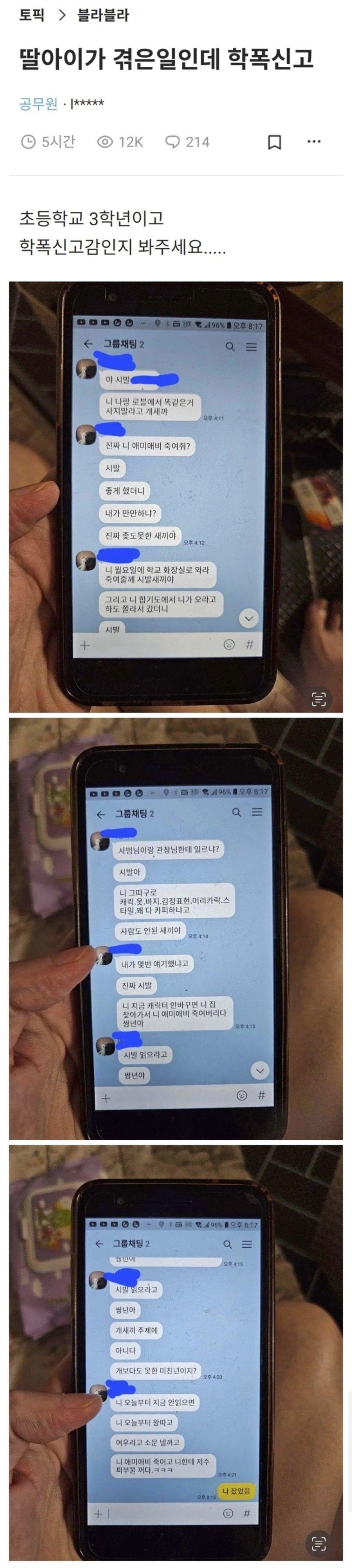 펌) 초등3학년 딸이 격었다는 학폭문자.jpg