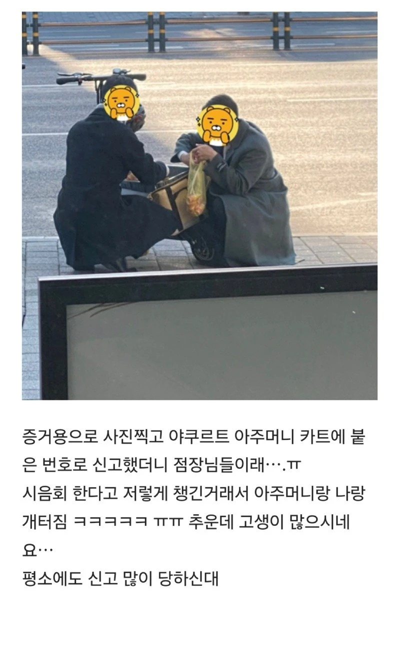 회사앞에서 누가 야쿠르트 아줌마 가방 털길래