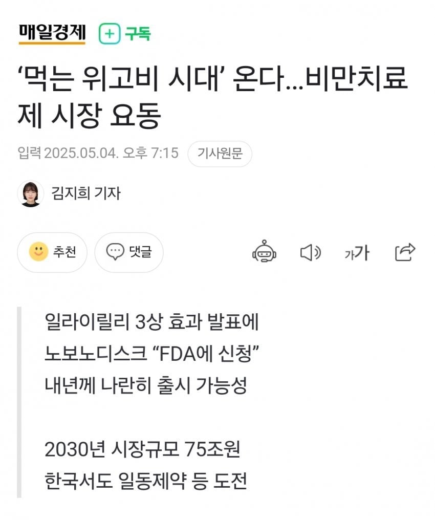 먹는 위고비 나온다고 함 ㄷㄷ
