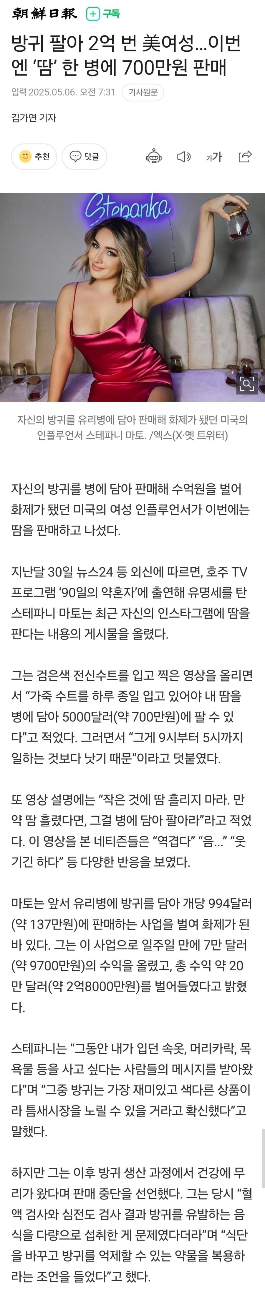 방귀 팔아서 2억 번 여성 근황