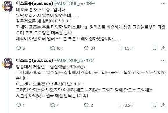 결국 그 동안 타 일러스트나 AI 이미지들을 트레이싱해왔다고 고백함