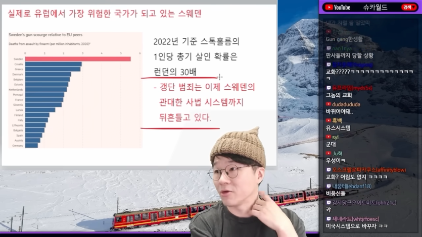 실제로 스웨덴 수도에서 총격범죄 사망률은 영국 런던의 30배라고 함