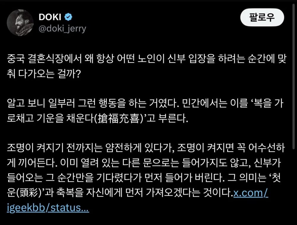 중국 노인들이 결혼식 신부입장을 방해하는 이유