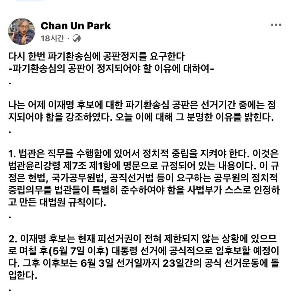 한양대 로스쿨 교수"공판정지를 요구한다"