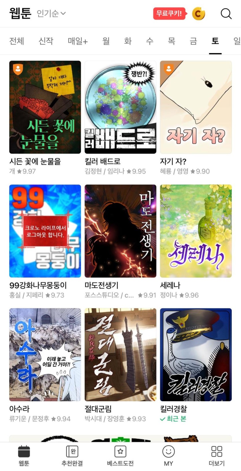 실시간 네이버웹툰 썸네일 근황