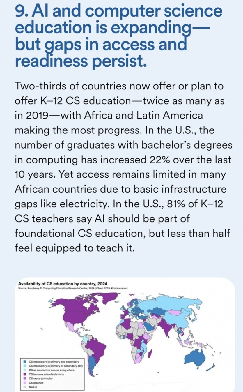 인공지능과 컴퓨터 사이언스 교육이 전세계 여러곳에서 급격한 확대를 보이고 있으며 이는 2019년 대비 2배에 달함. 그러나 그런 준비가 되었느냐는 또다른 얘기.
