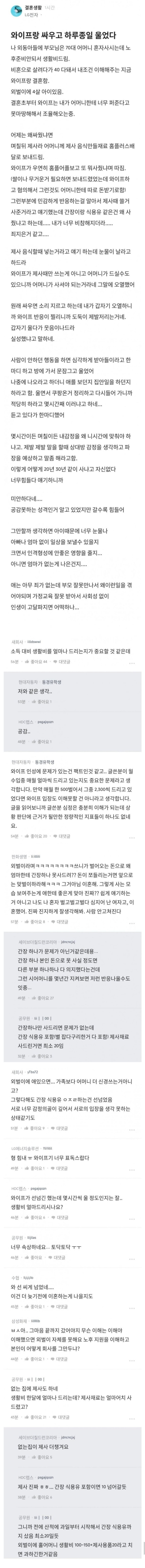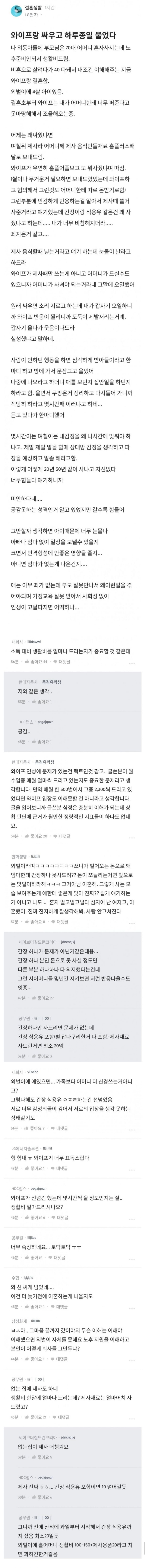 와이프랑 싸우고 하루종일 울었다