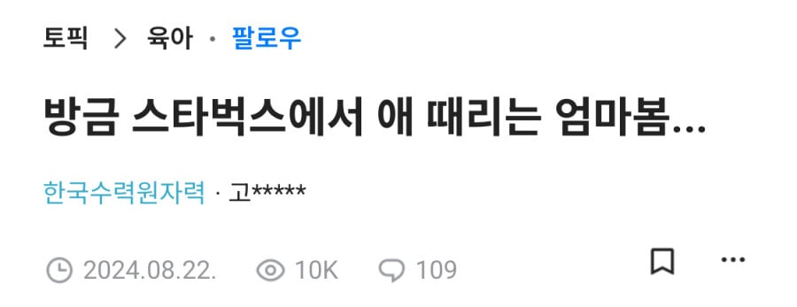 방금 스타벅스에서 애 때리는 엄마봄