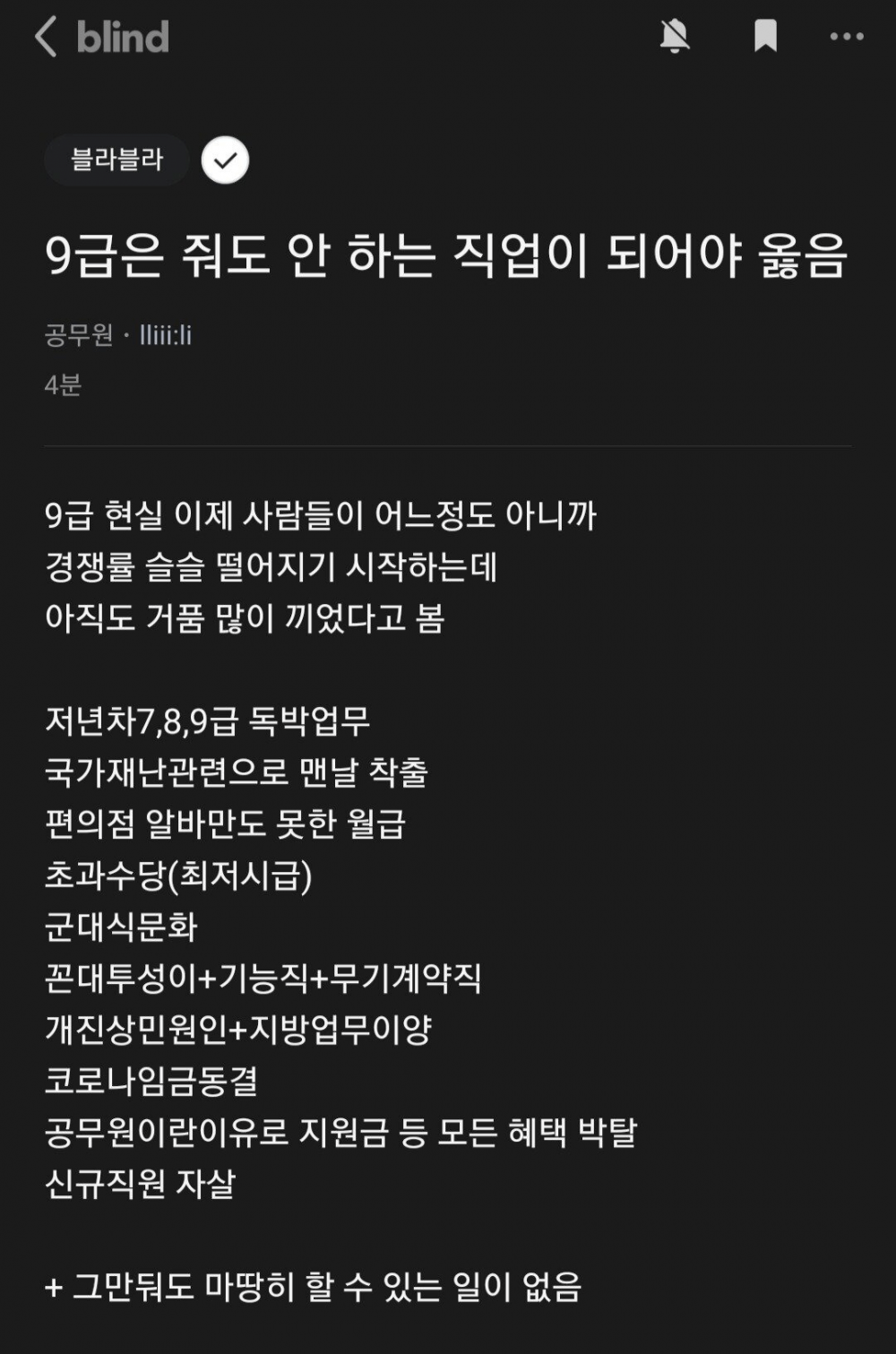 블라인드에서 분석한 9급 공무원 떡락하는 이유