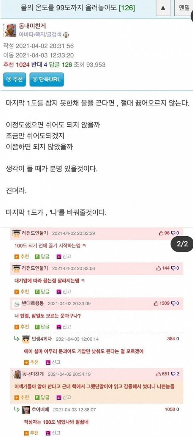 물의 온도를 99까지 올려놓아도