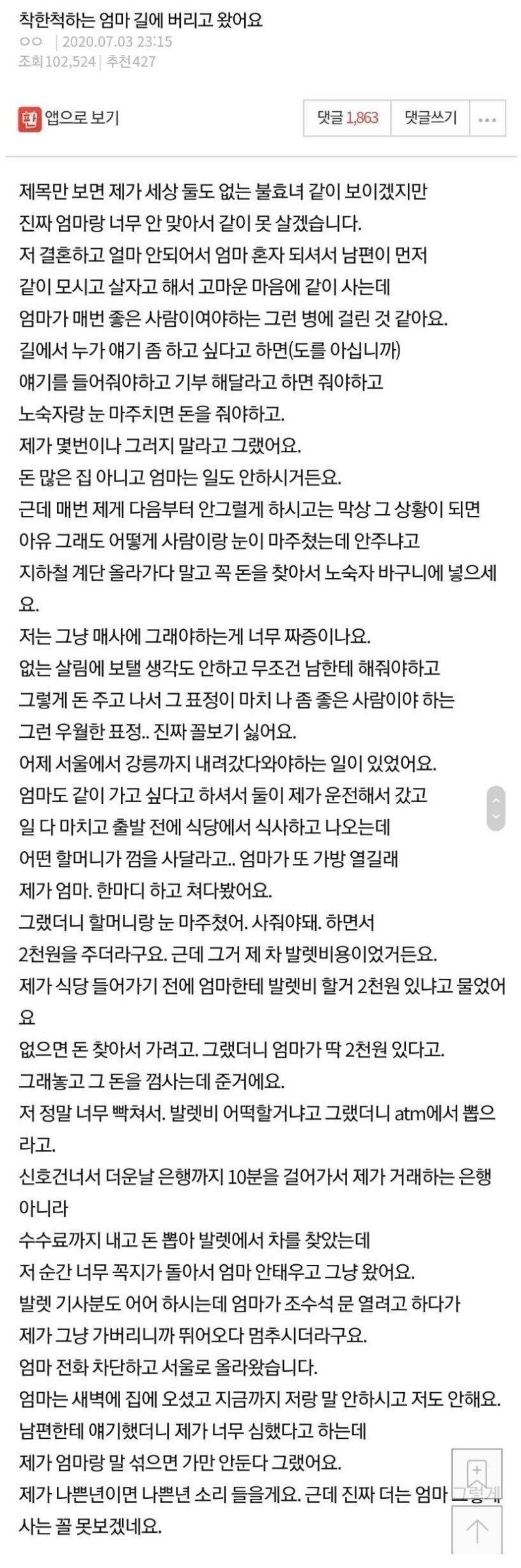 착한척하는 엄마 길에 버리고 왔어요.jpg