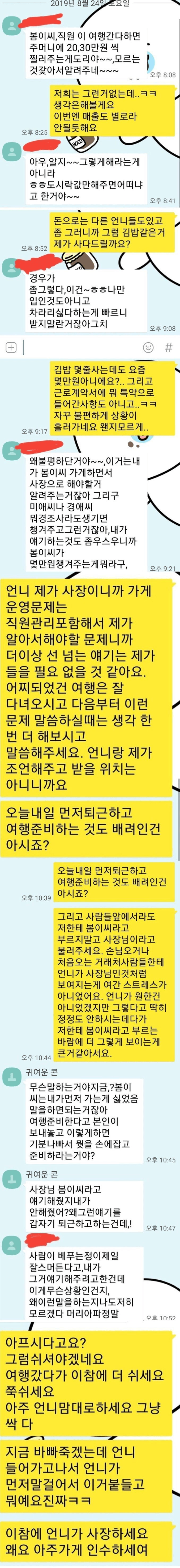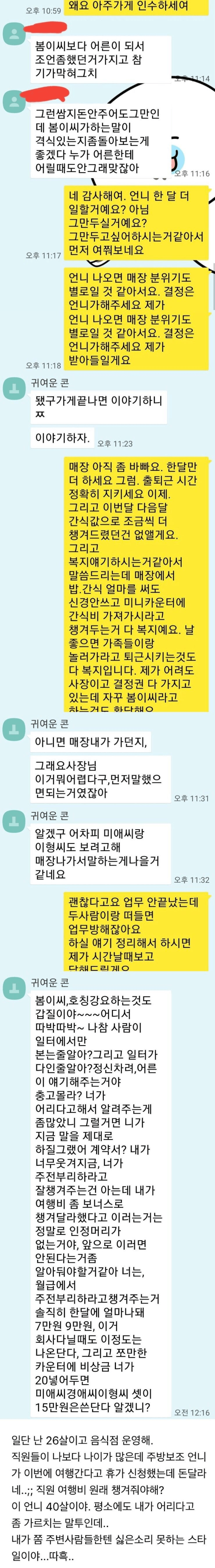 20대 여사장을 대하는 40대 아줌마 직원 수준
