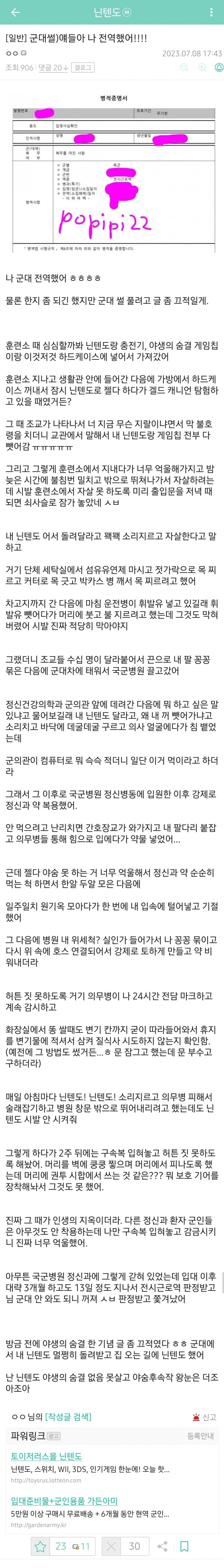 군대에 닌텐도 "진짜" 가져간 사람
