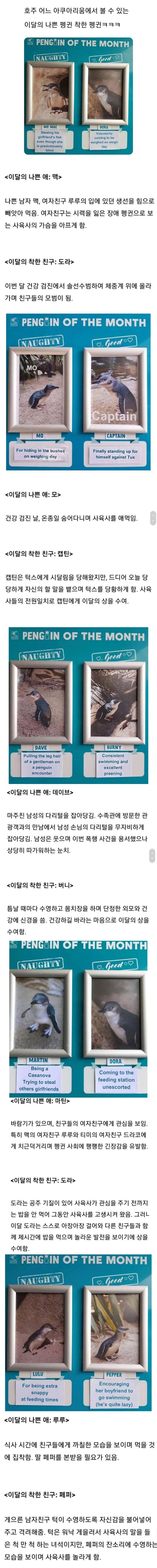 호주 아쿠아리움에서 지정하는 이달의 펭귄