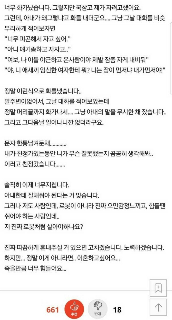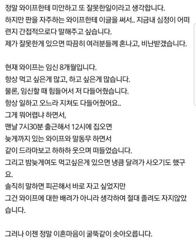 임신 8개월의 아내와 이혼하고 싶습니다