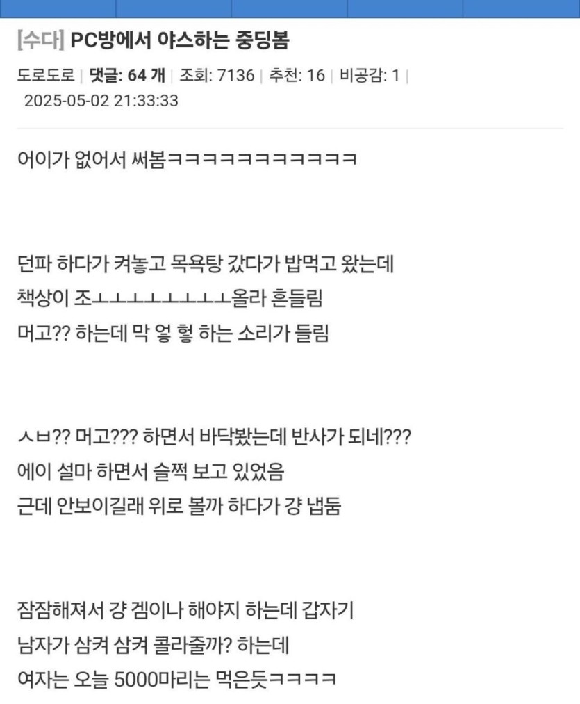 PC방에서 야스하는 중딩봄