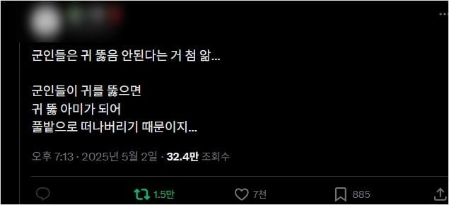 군인들은 귀 뚫음 안된다는 거 첨 앎...
