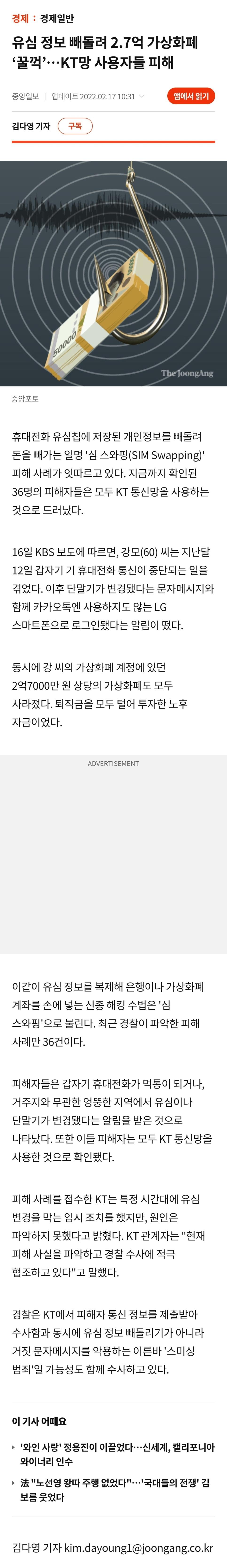 과거 KT의 유심 복제 금융해킹 사건