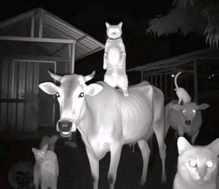 야간투시경으로 본 축사
