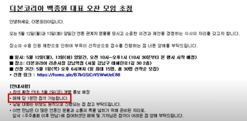 백종원, 귀국후에 기자 오찬 모임 초청 모집중