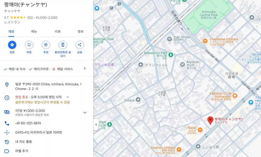 음식 사진을 보니 한국식 중화요리 가게네요.