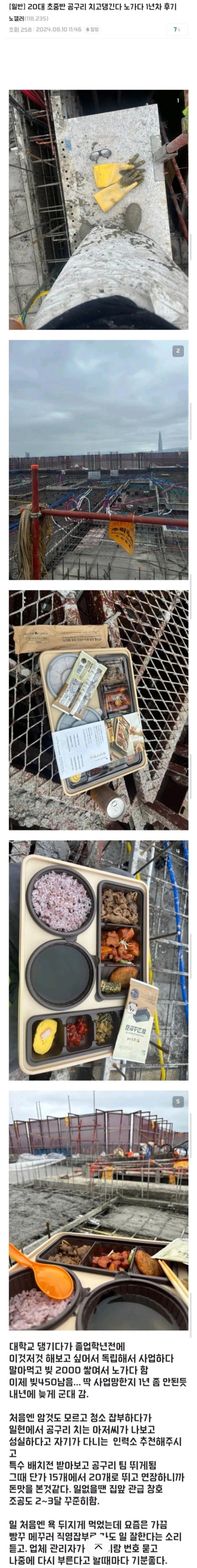 20대 초중반 공구리 치고댕긴다 노가다 1년차 후기