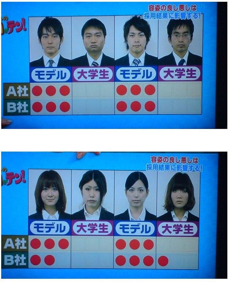 일본 방송에서 모델(파란색)하고 실제 대학생(보라색)을 보내서 면접을 본 결과