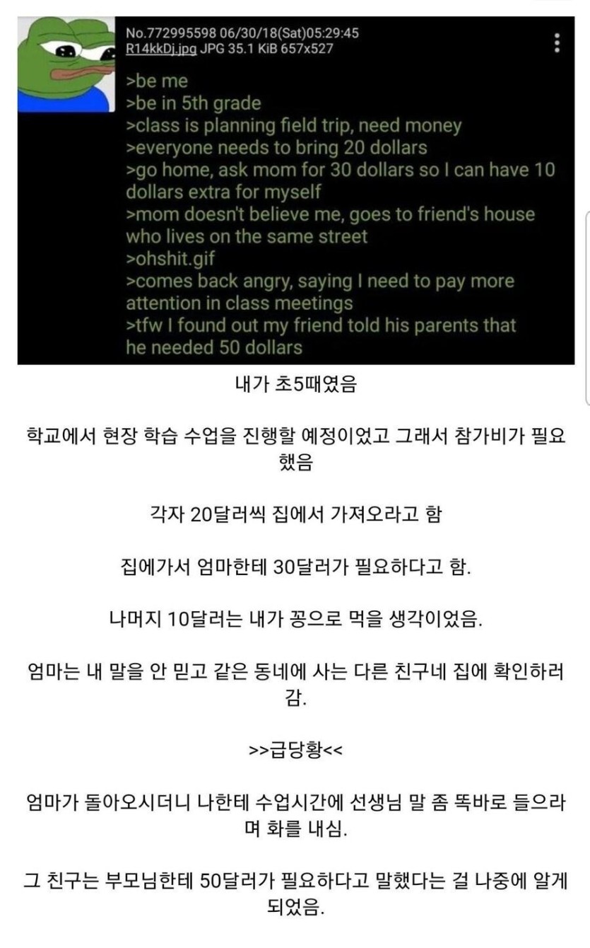 현장 학습 참가비 떼어먹을려던 자식