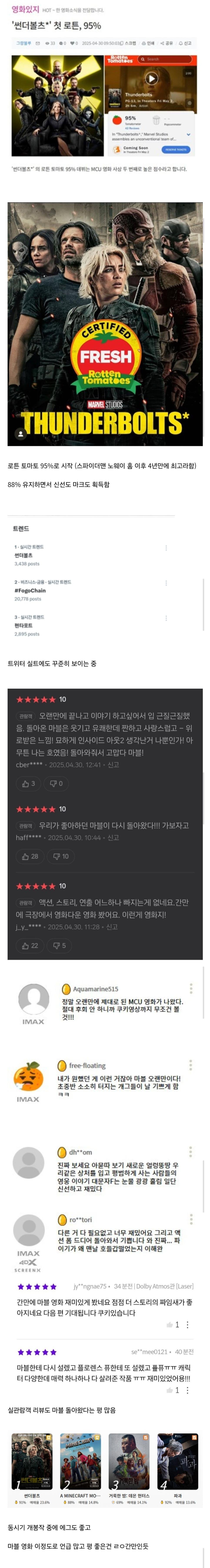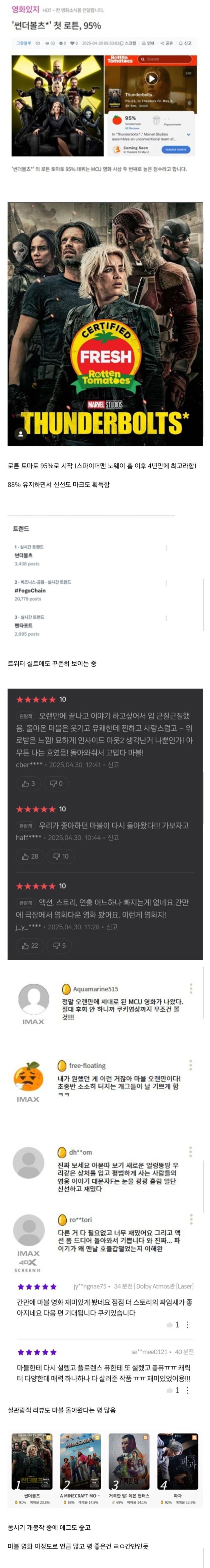 펌) 최근 마블 영화 중 가장 반응 좋은 썬더볼츠* 리뷰들 (약 ㅅㅍ)