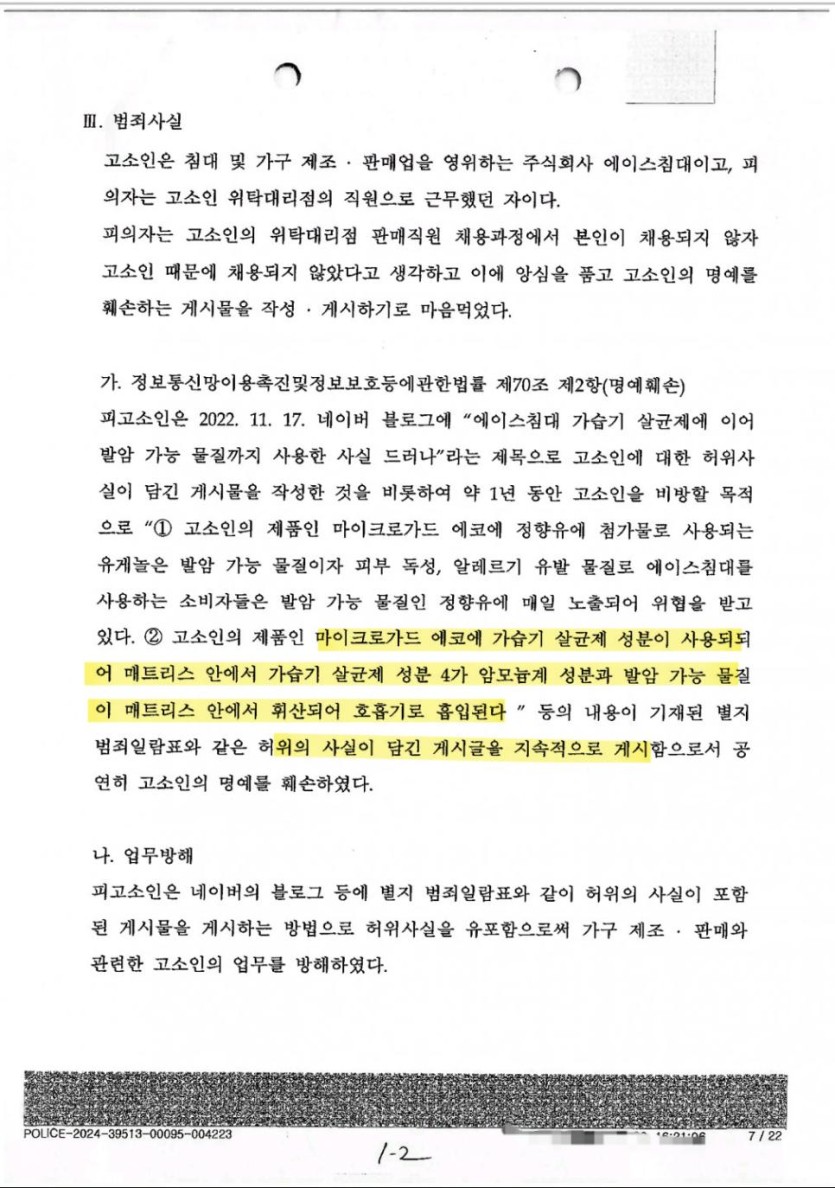 1. 전 직원이 에이스침대가 가습기살균제 성분 4급암모늄(BKC) 사용 사실 내부고발함