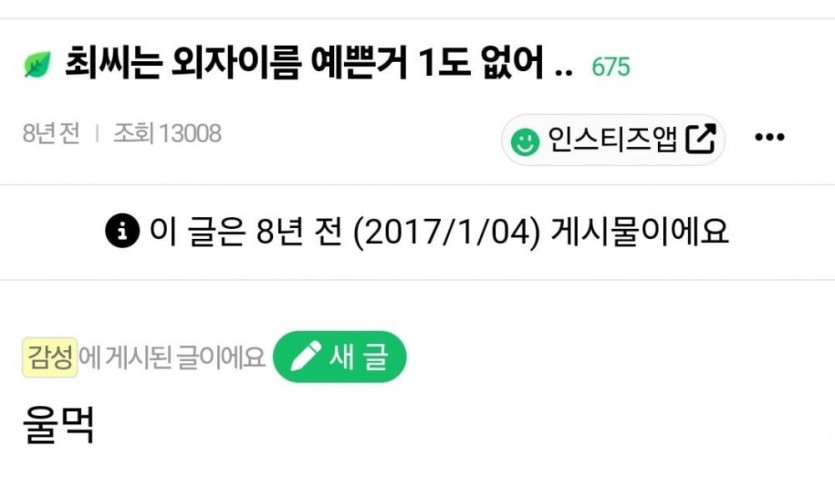 최씨는 외자 이름 예쁜 거 1도 없어..