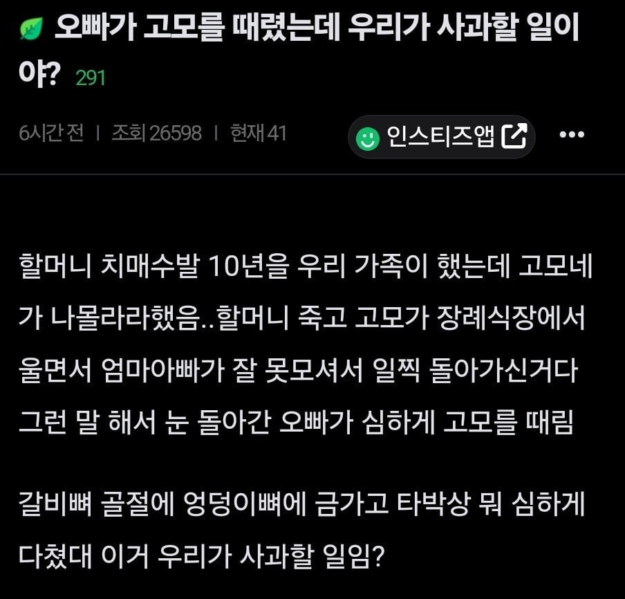 오빠가 고모 팼는데 잘못한거임?.jpg